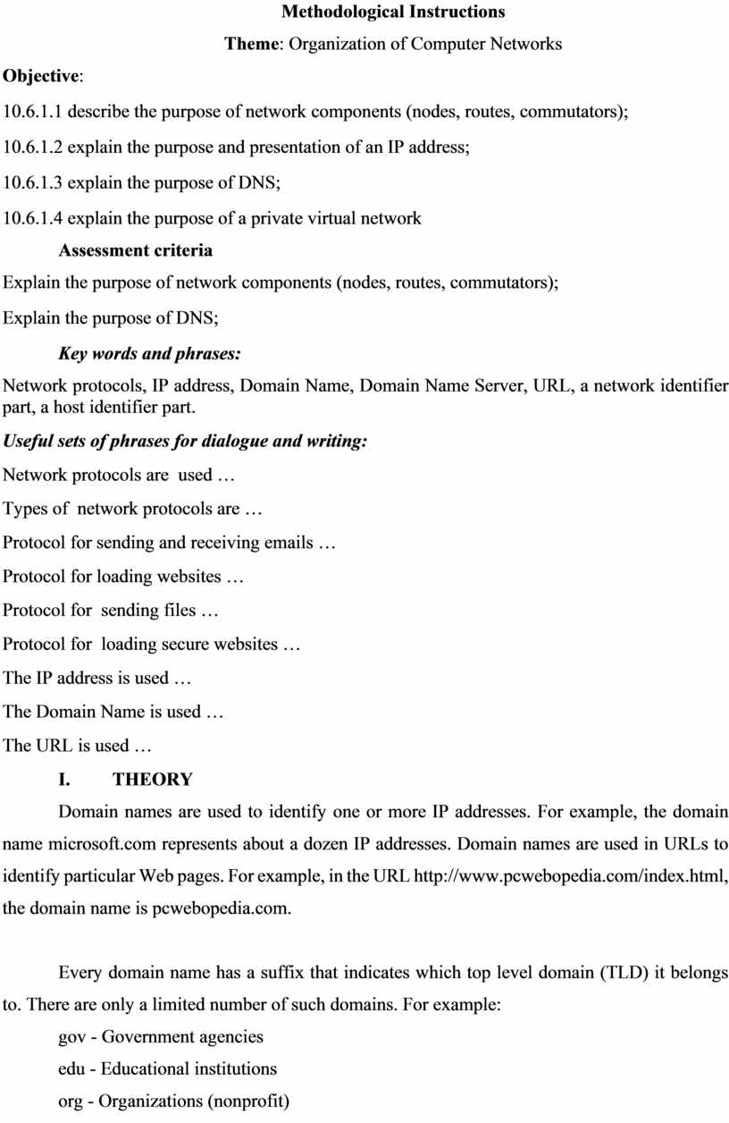 Theme: Organization of Computer Networks