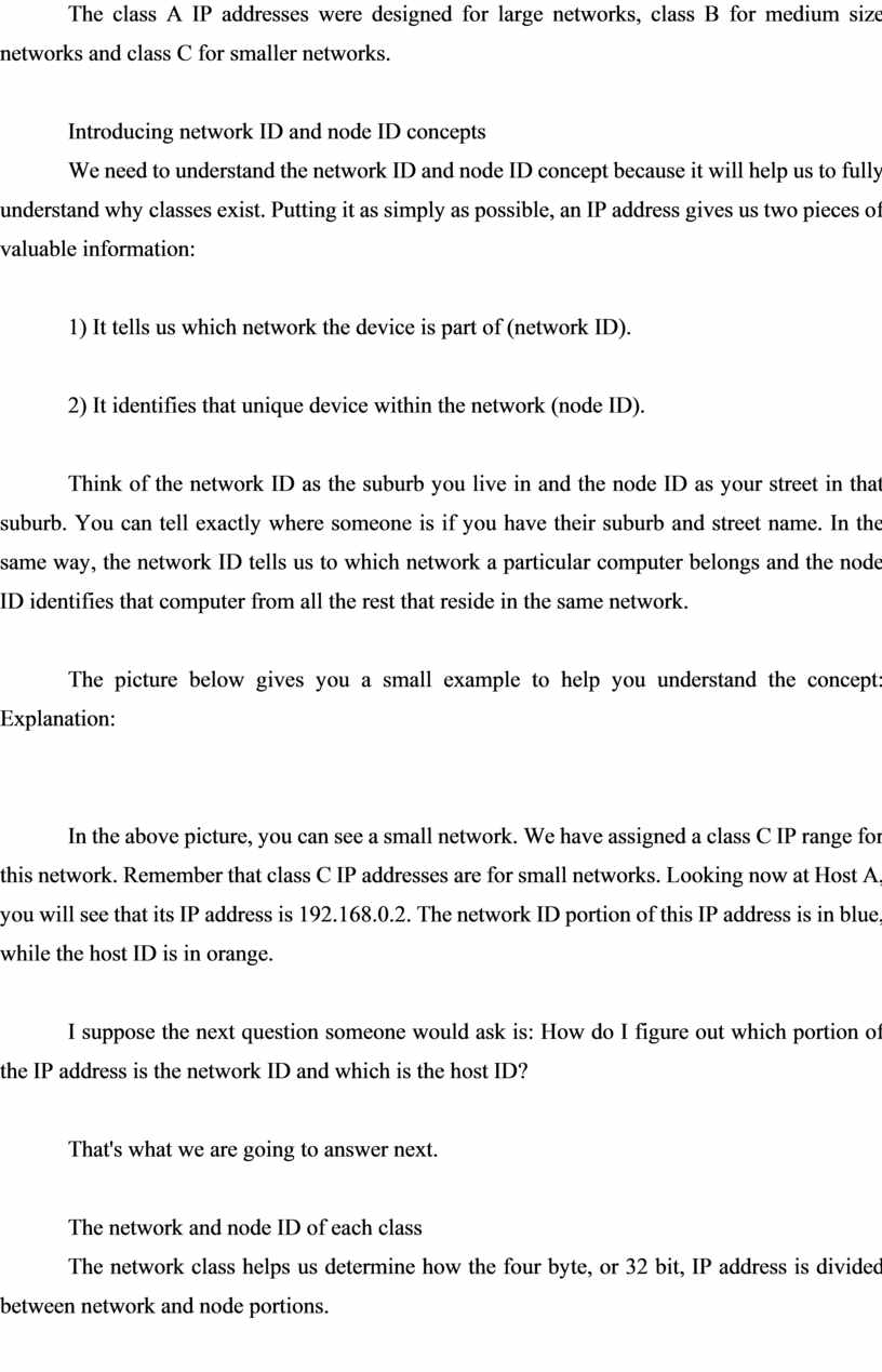We need to understand the network ID and node ID concept because it will help us to fully understand why classes exist. Putting it as simply as possible, an IP address gives us two pieces of valuable information: