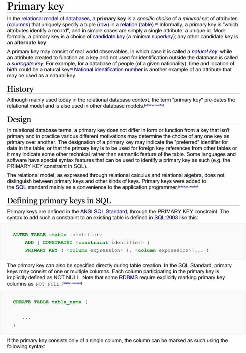 Although mainly used today in the relational database context, the term "primary key" pre-dates the relational model and is also used in other database models.[citation needed]