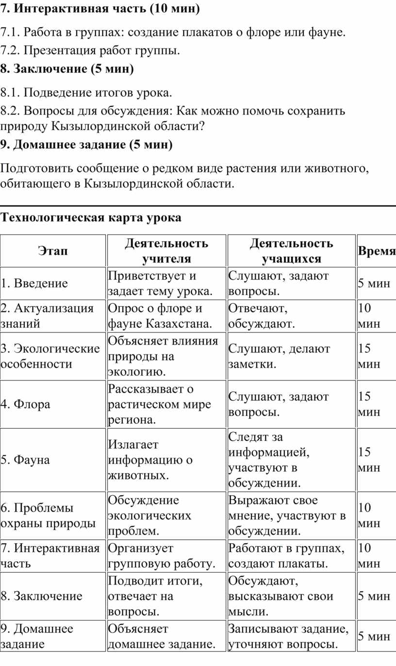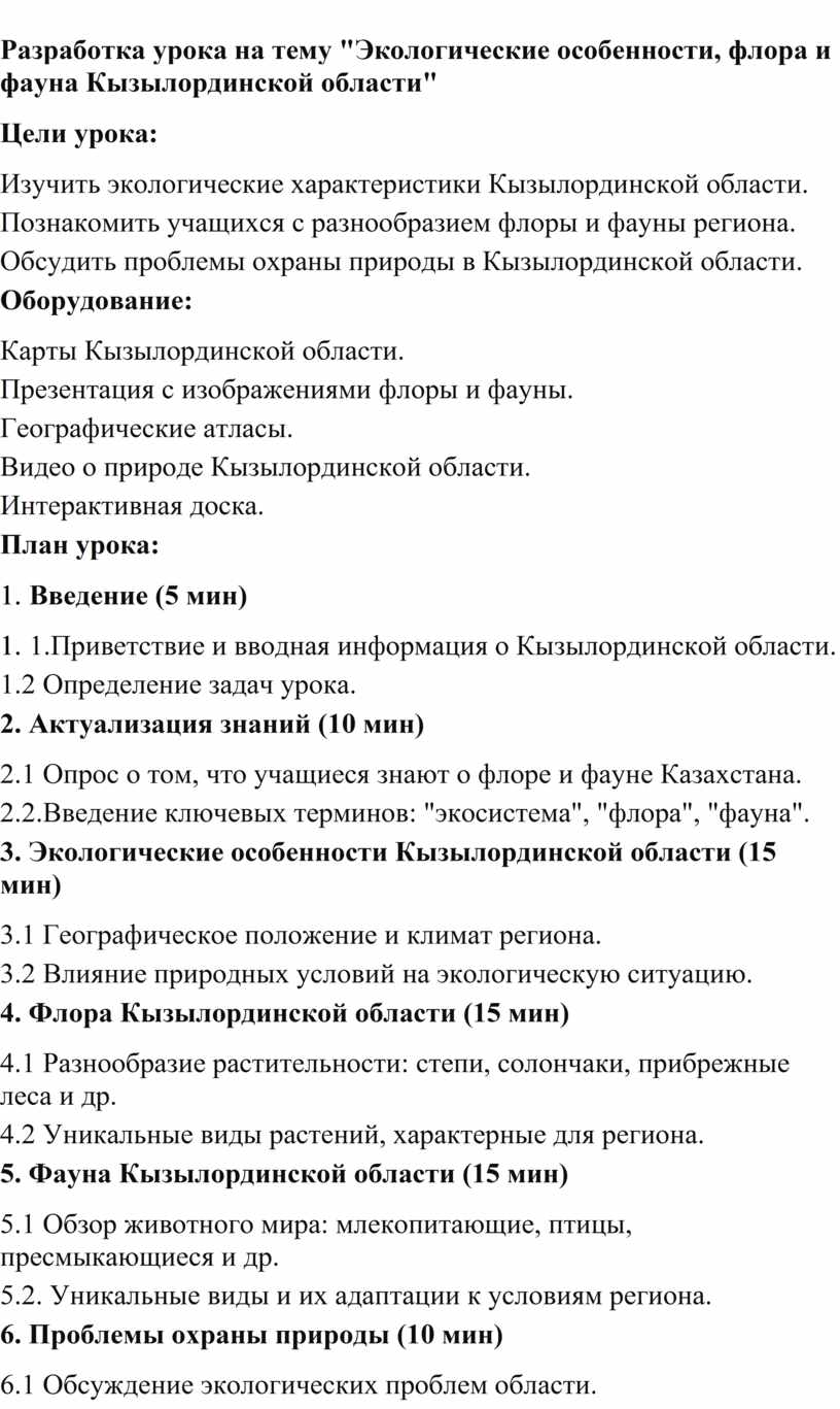 3. Экологические особенности Кызылординской области (15 мин)