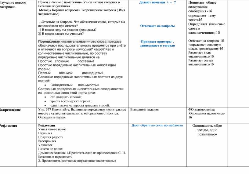 Прием «Чтение с пометками». Уч-ся читают сведения о Бегалине из учебника Метод « Корзина вопросов» Теоретические вопросы ( Имя числительное)