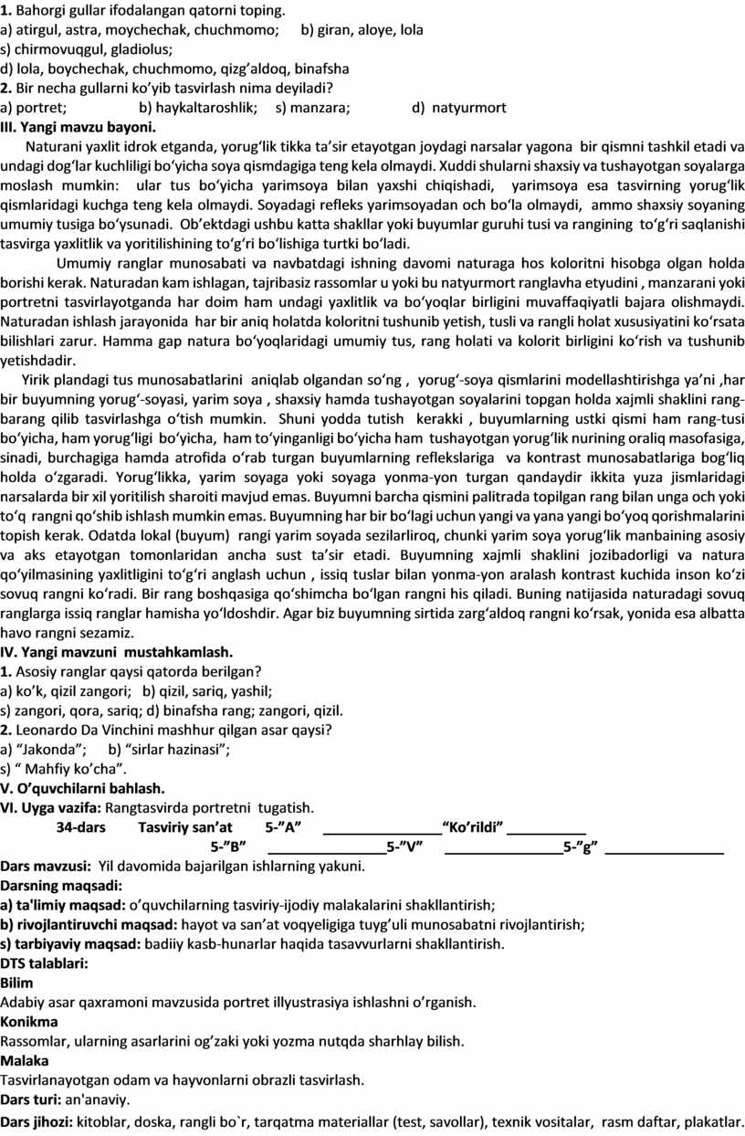 34-dars Tasviriy san’at 5-”A” _______________“Ko’rildi” __________