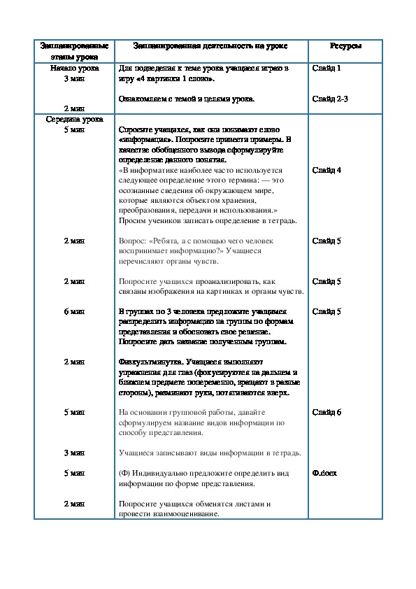План урока