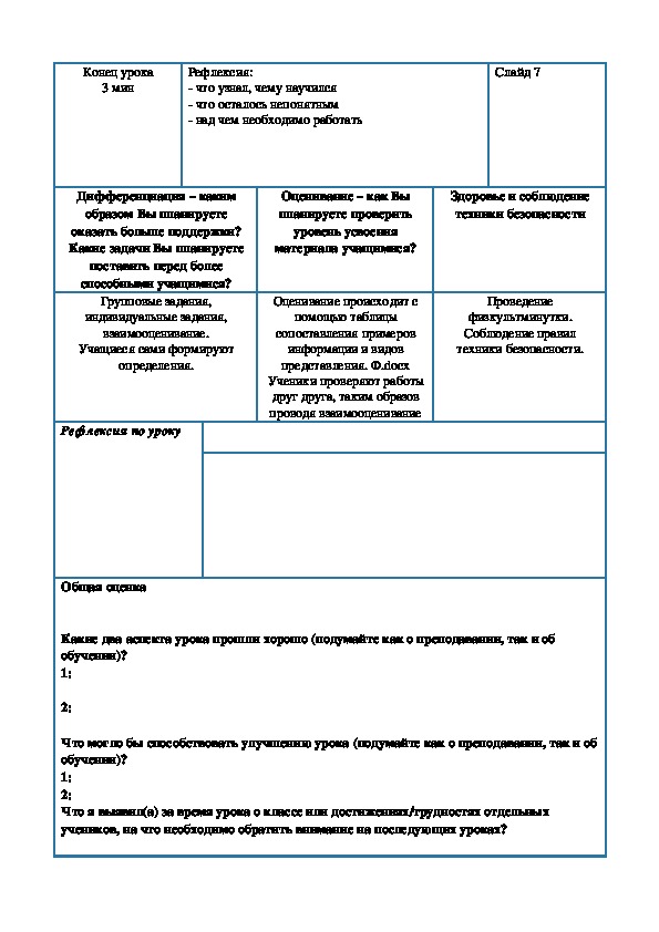 Рефлексия по уроку