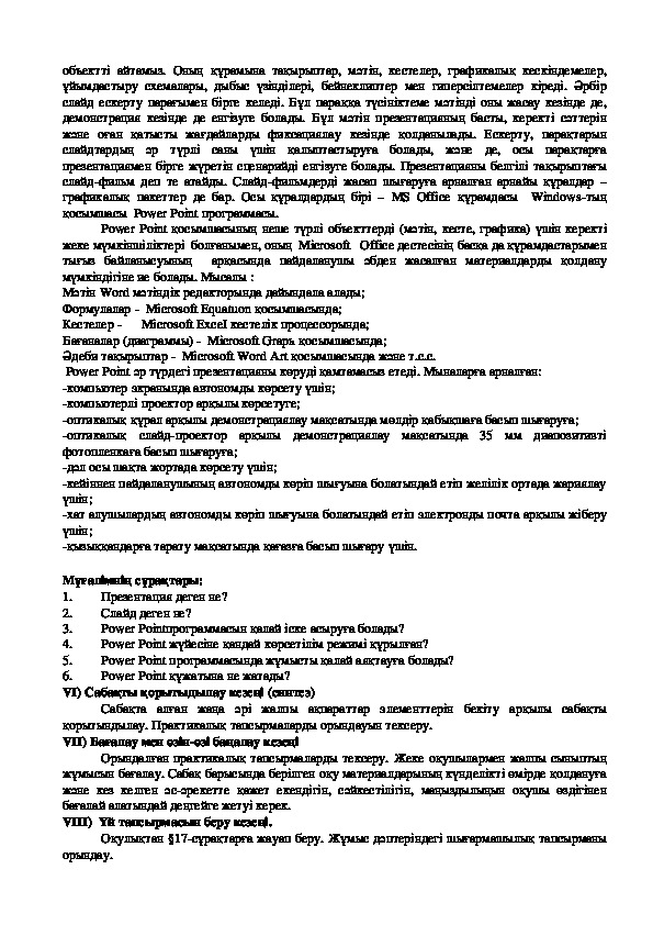 қосымшасы Роwer Рoint программасы.