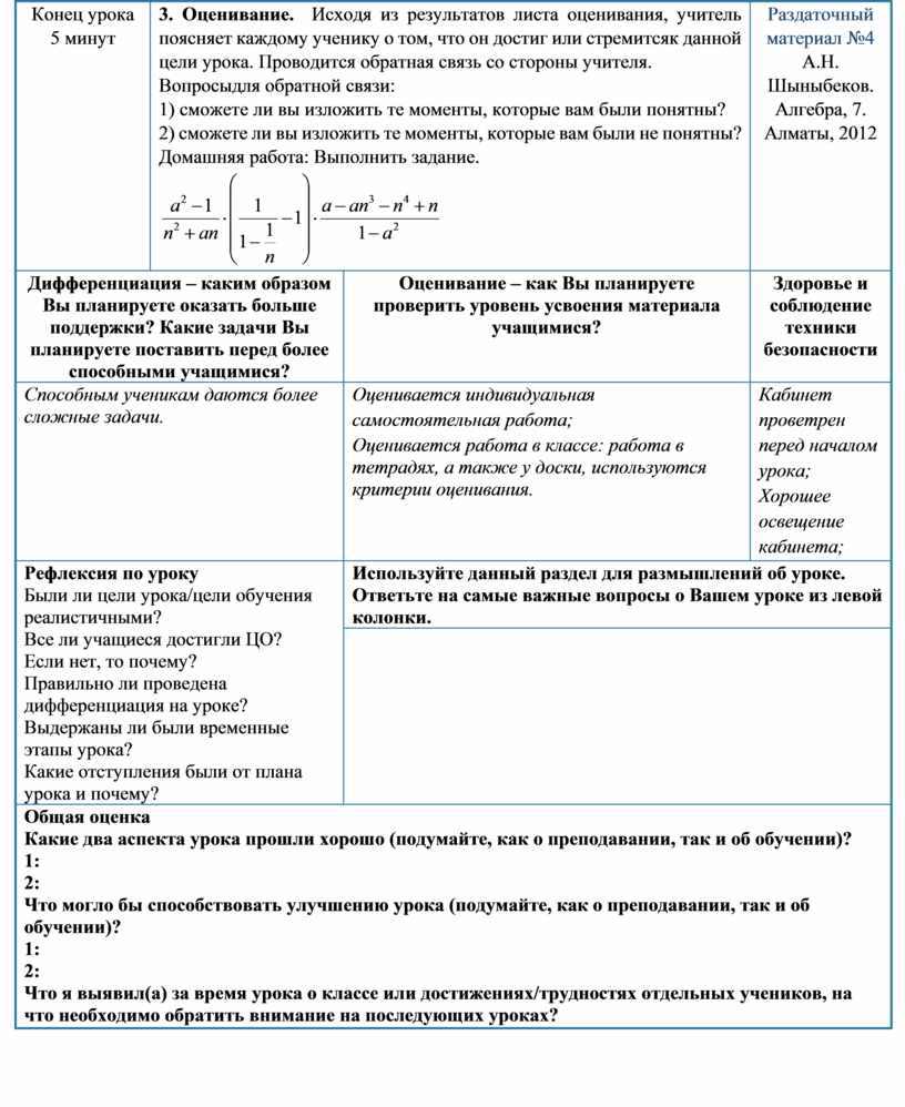 Раздаточный материал №4 А.Н. Шыныбеков. Алгебра, 7. Алматы, 2012