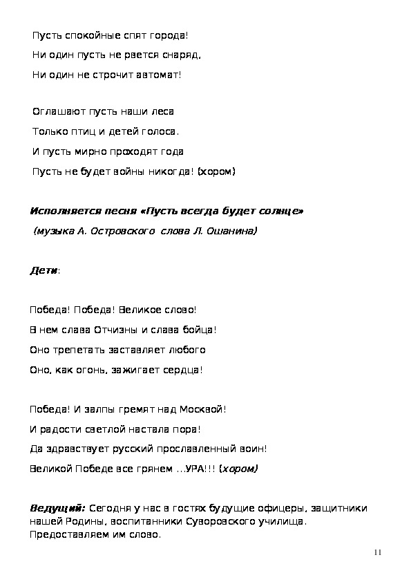 3Песня «Победа придет» (музыка и слова М. Сидоровой)