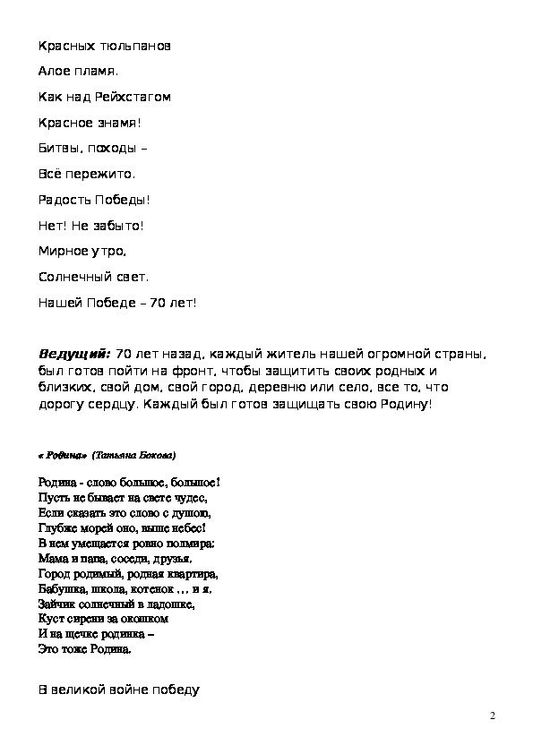 Ведущий: 70 лет назад, каждый житель нашей огромной страны,