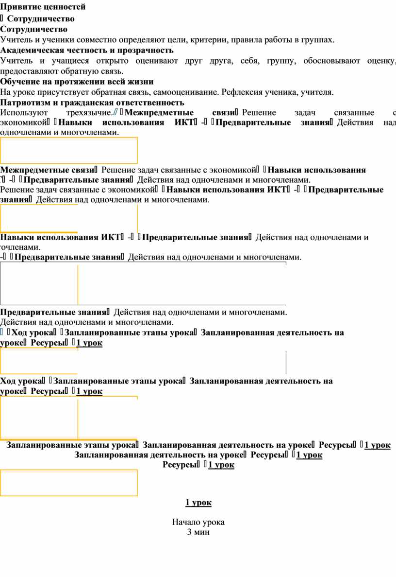 Запланированные этапы урока |