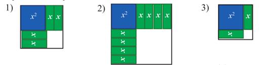 Дополните до квадрата модели и запишите площадь квадрата ввиде выражения: