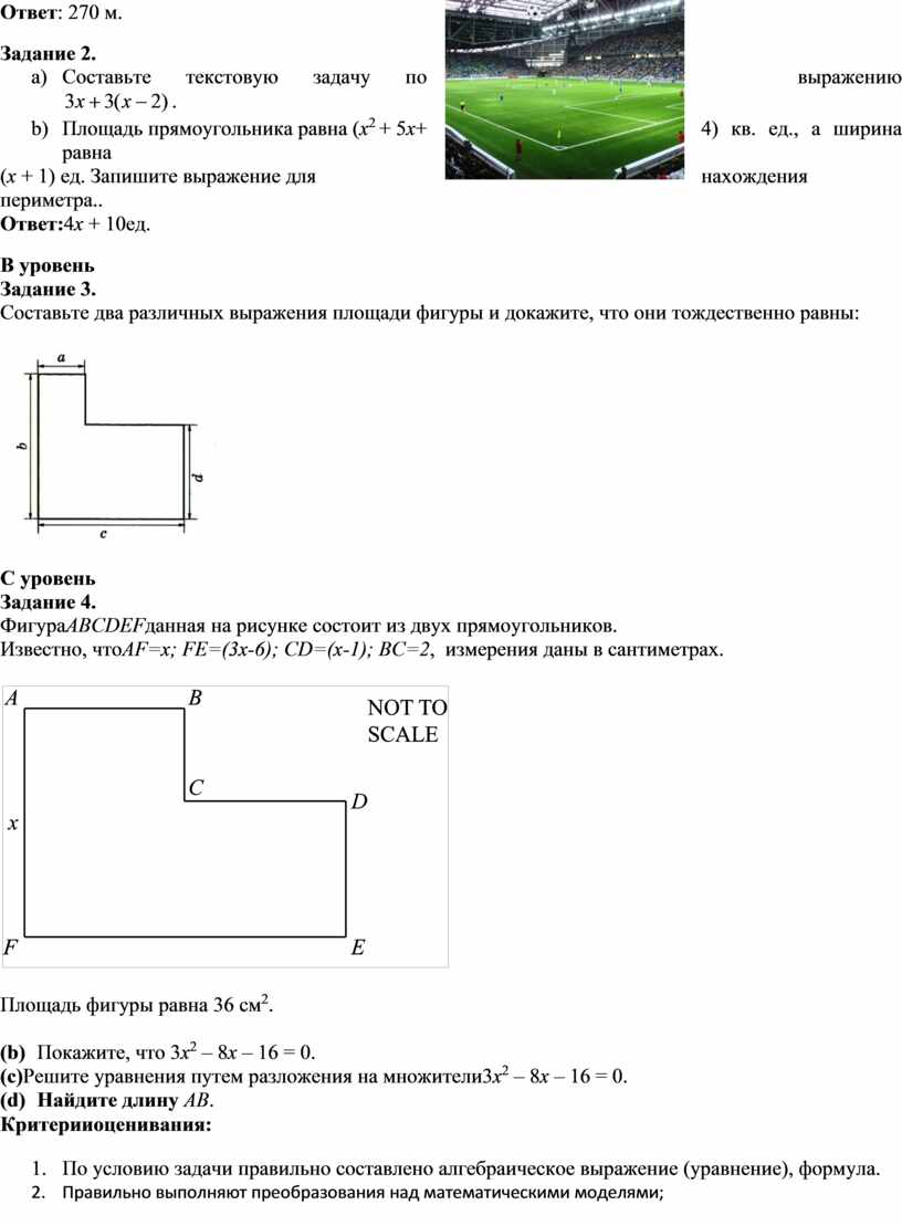 Составьте текстовую задачу по выражению b) Площадь прямоугольника равна (x2 + 5x+ 4) кв. ед., а ширина равна (x + 1) ед. Запишите выражение для нахождения периметра.. Ответ:4x + 10ед. В уровень Задание 3. Составьте два различных выражения площади фигуры и докажите, что они тождественно равны: