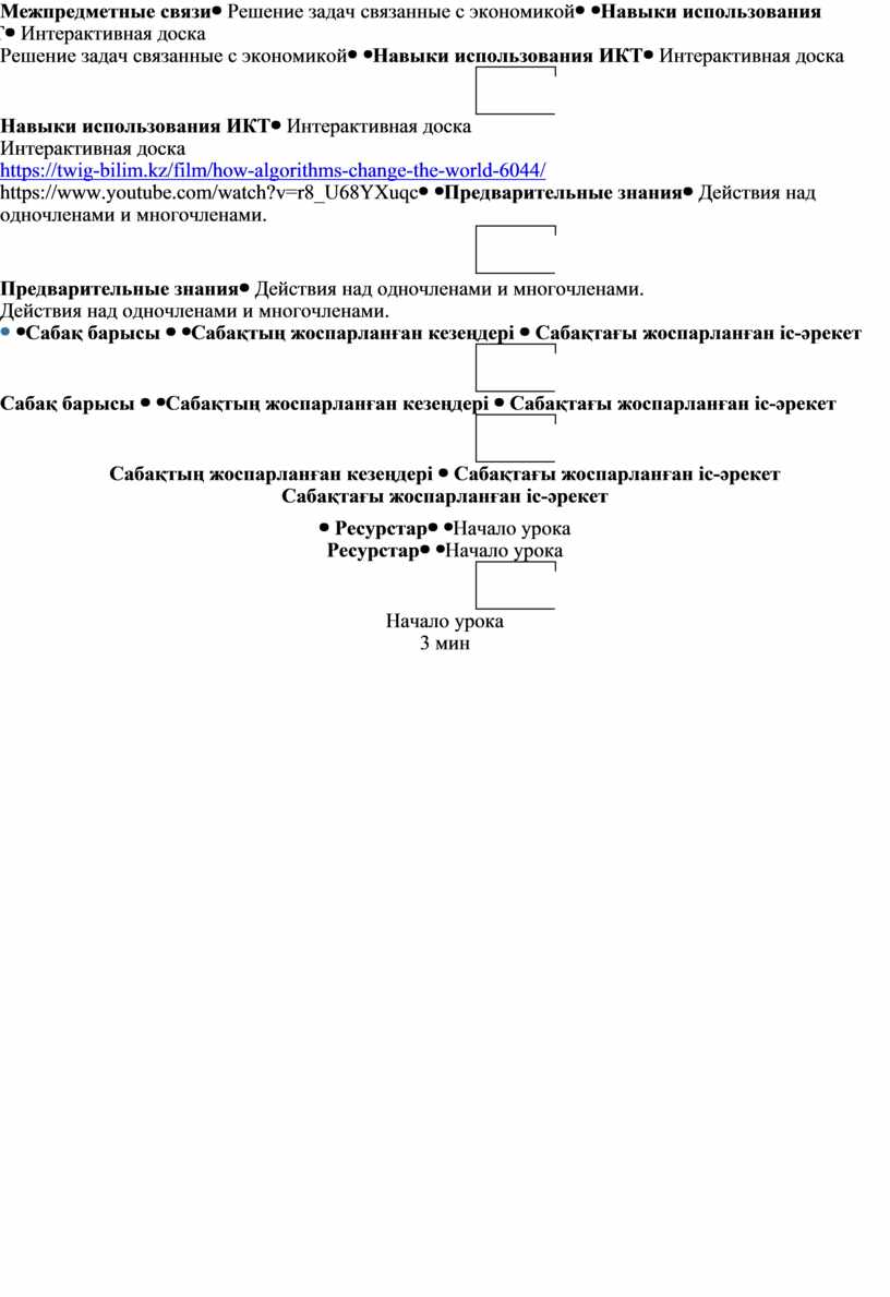 Интерактивная доска https://twig-bilim.kz/film/how-algorithms-change-the-world-6044/ https://www.youtube.com/watch?v=r8_U68YXuqc |