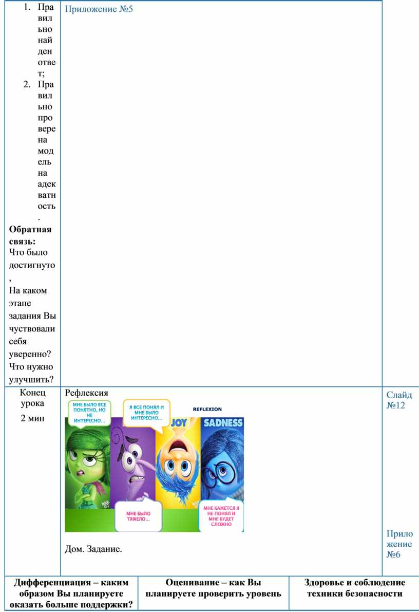 Рефлексия по уроку Были ли цели урока/цели обучения реалистичными? Все ли учащиеся достигли ЦО? Если нет, то почему? Правильно ли проведена дифференциация на уроке? Выдержаны ли были временные этапы урока? Какие отступления были от плана урока и почему? |