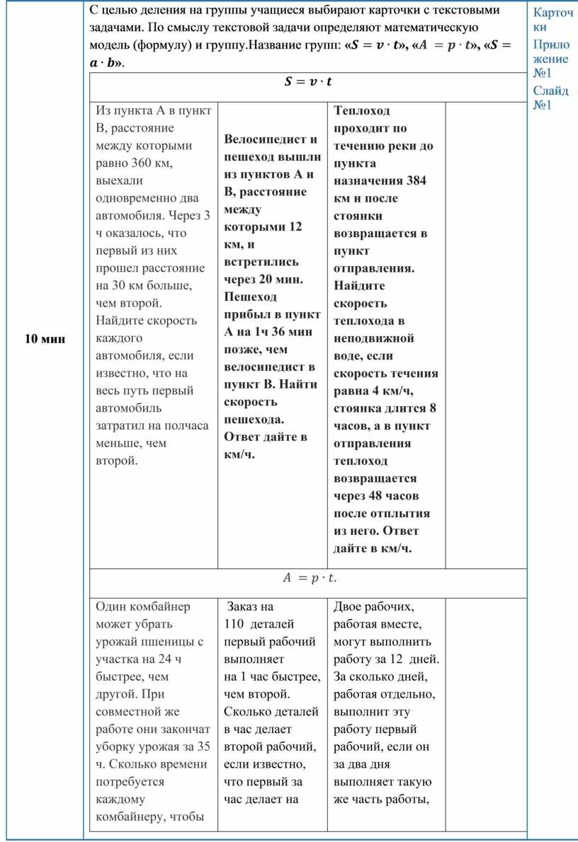 целью деления на группы учащиеся выбирают карточки с текстовыми задачами. По