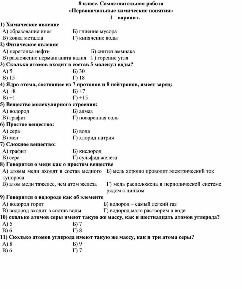 10) сколько атомов серы имеют такую же массу, как и шестнадцать атомов углерода?