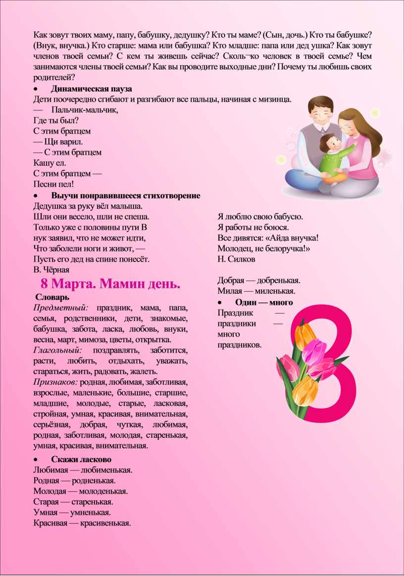 тема: Семья. 8 Марта. Мамин день.
