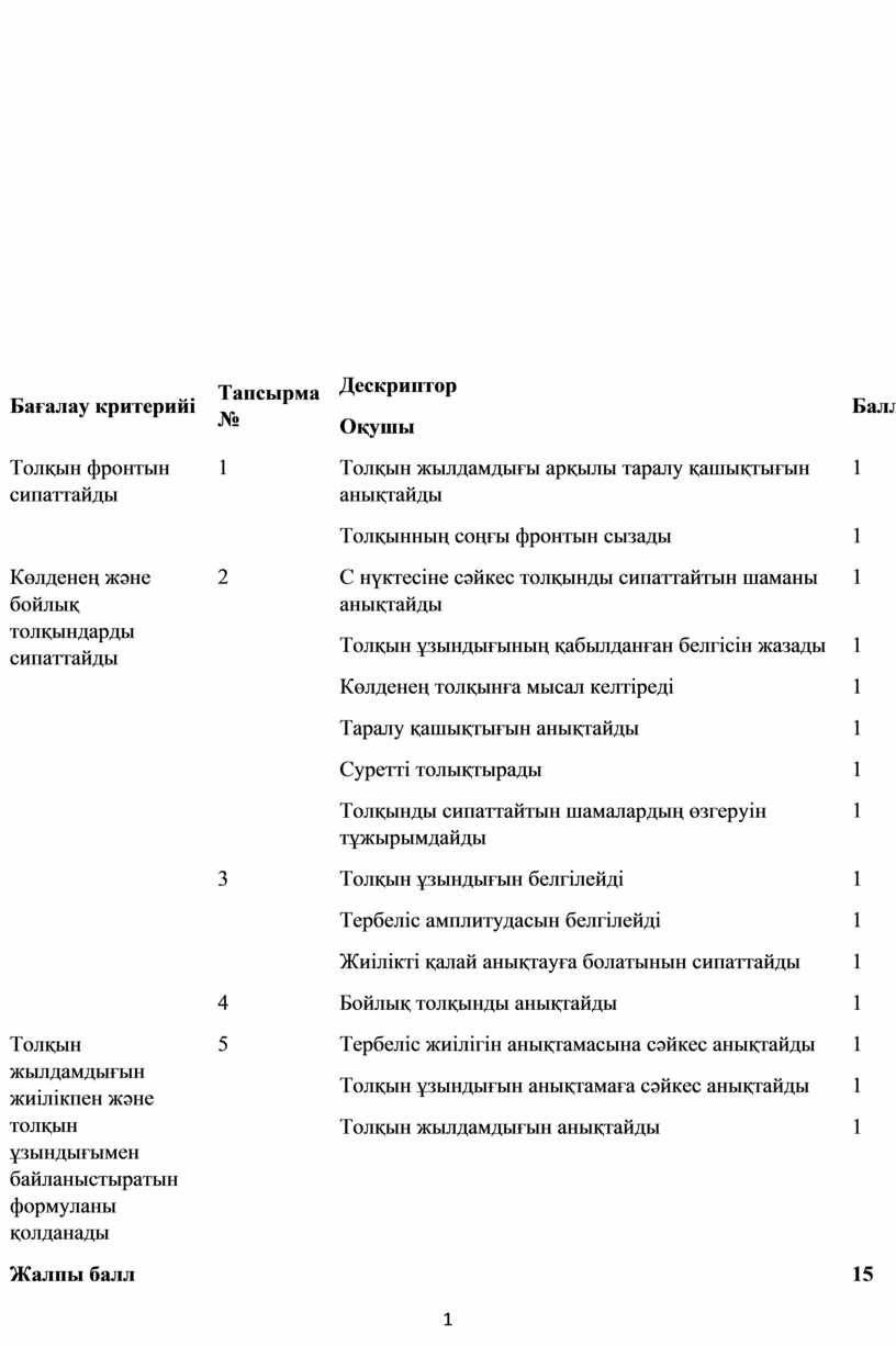 Толқынды сипаттайтын шамалардың өзгеруін тұжырымдайды |