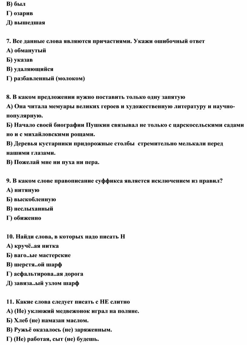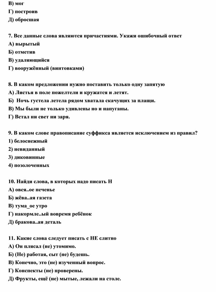 7. Все данные слова являются причастиями. Укажи ошибочный ответ