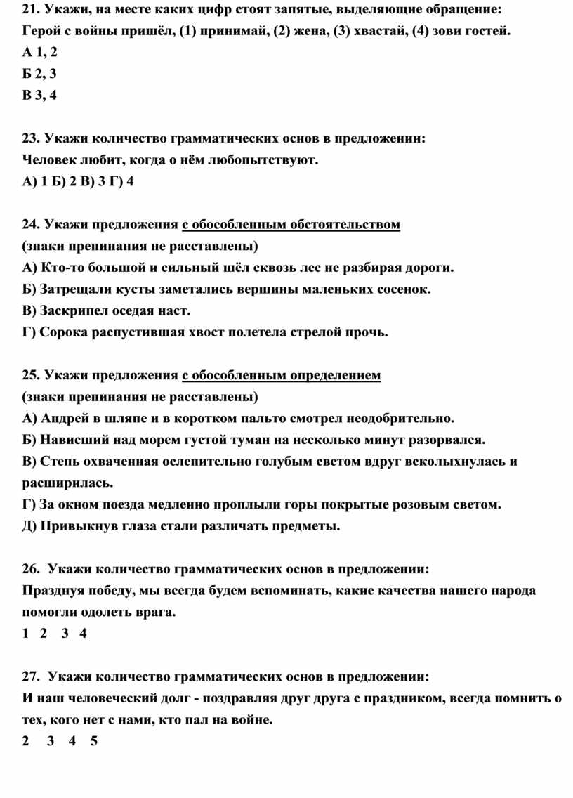 21. Укажи, на месте каких цифр стоят запятые, выделяющие обращение