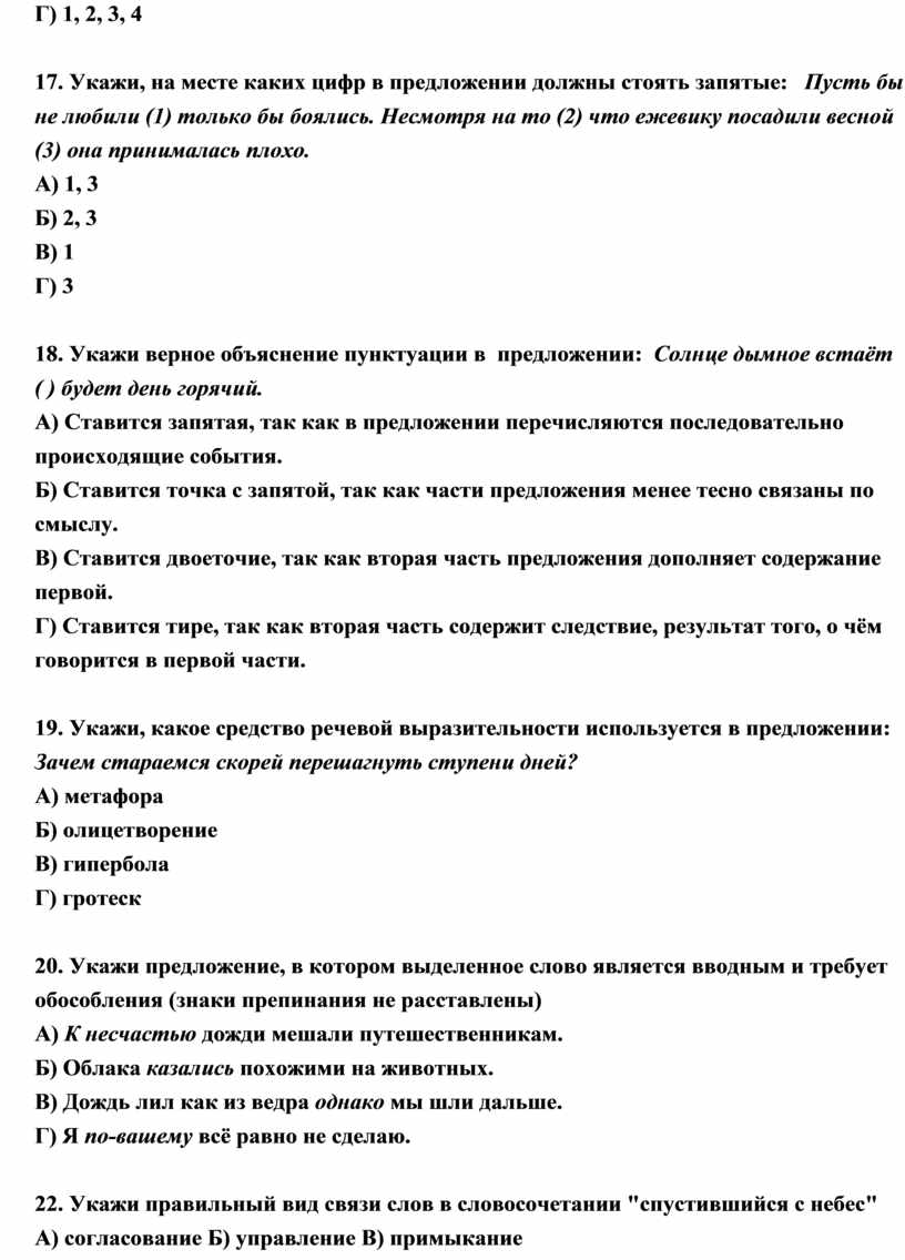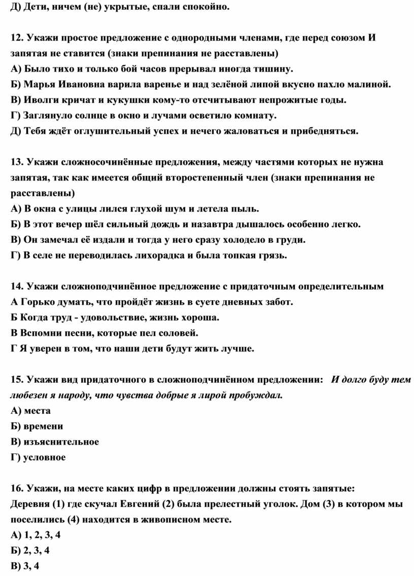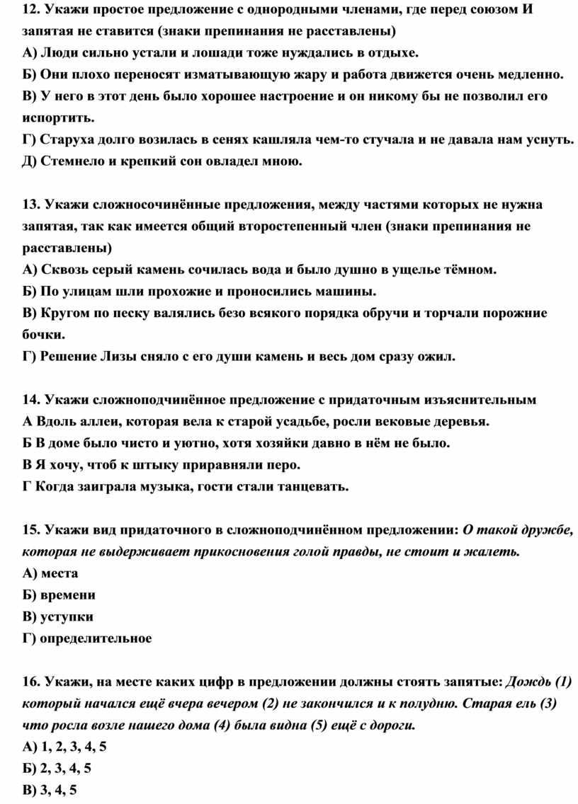 16. Укажи, на месте каких цифр в предложении должны стоять запятые: