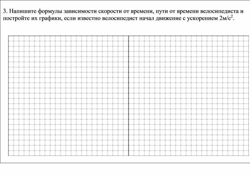 3. Напишите формулы зависимости скорости от времени, пути от времени велосипедиста и постройте их графики, если известно велосипедист начал движение с ускорением 2м/с2.