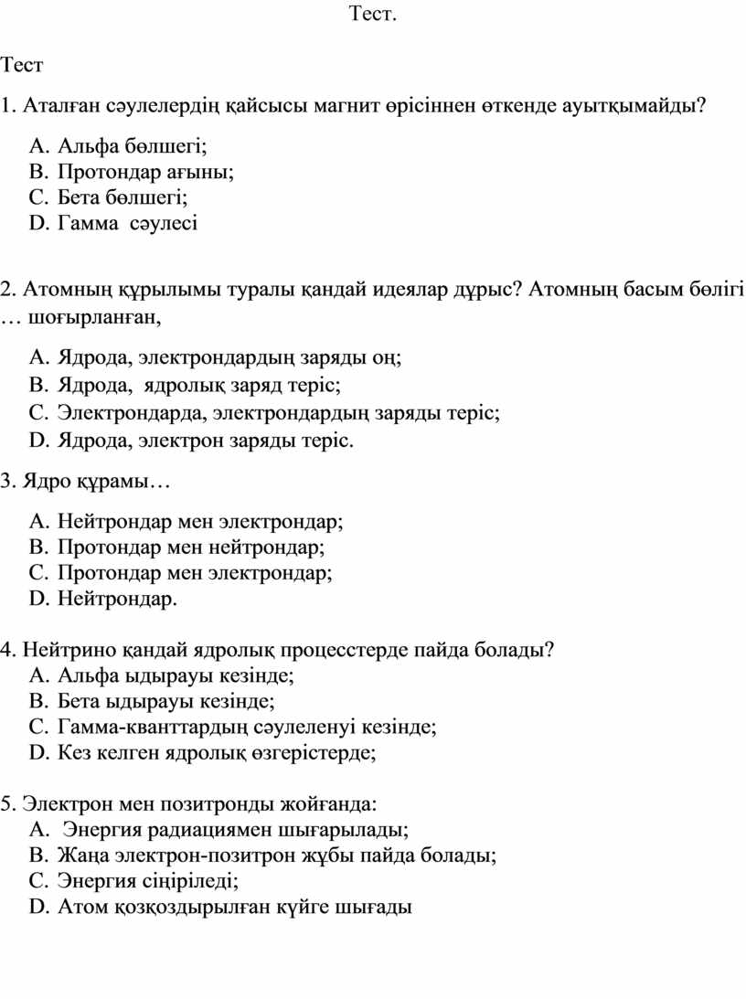 1. Аталған сәулелердің қайсысы магнит өрісіннен өткенде ауытқымайды?