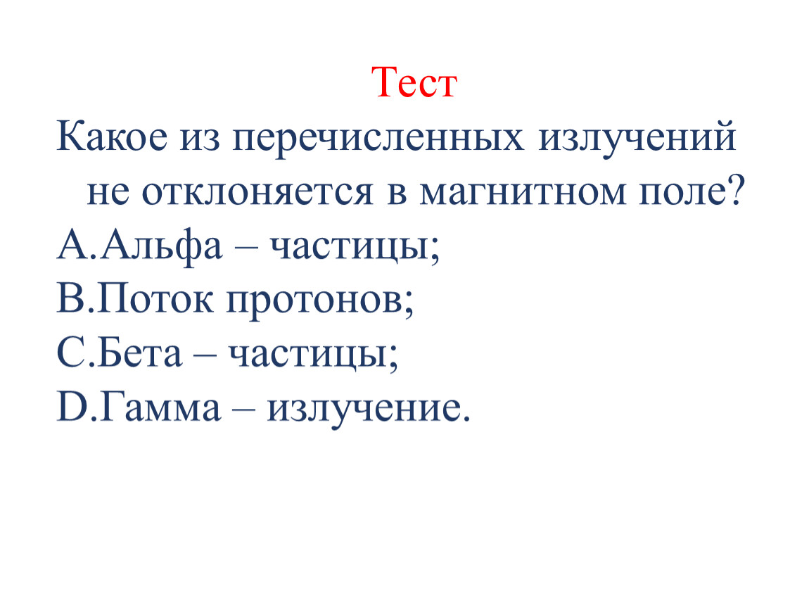 Какое из перечисленных излучений не отклоняется в магнитном поле?