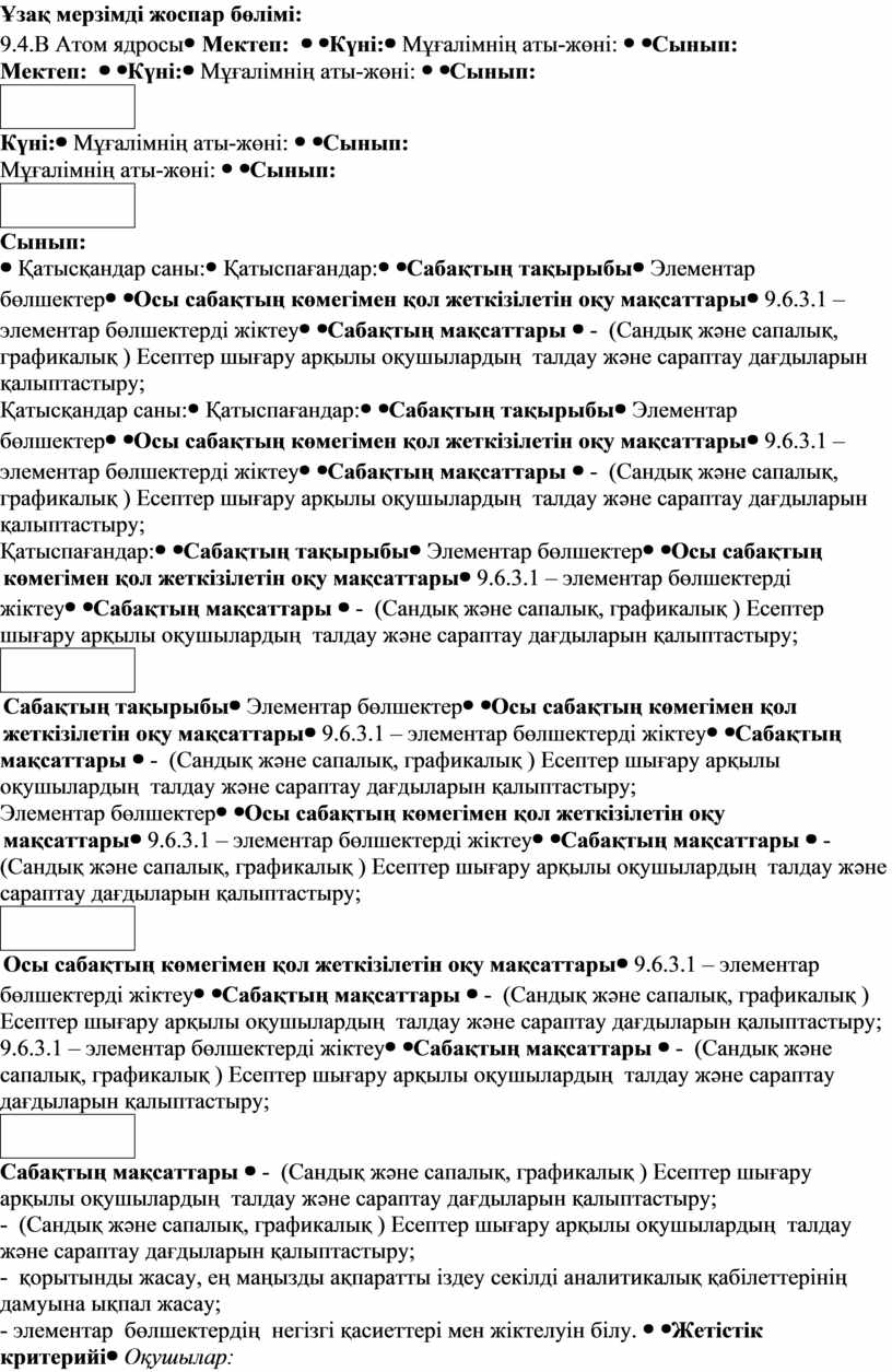 Ұзақ мерзімді жоспар бөлімі: 9.4.В Атом ядросы |