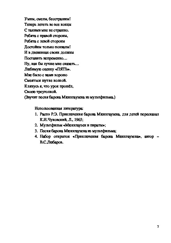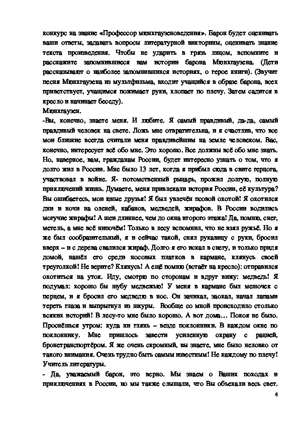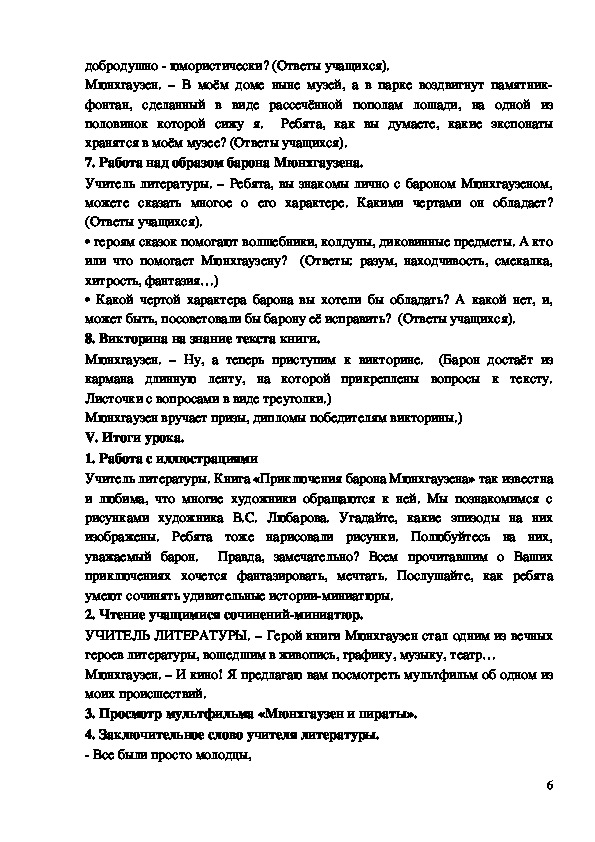 Учитель литературы. – Ребята, вы знакомы лично с бароном Мюнхгаузеном,