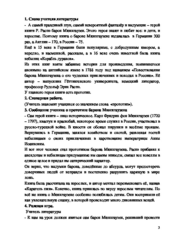 3. Сообщение ученика о прототипе барона Мюнхгаузена