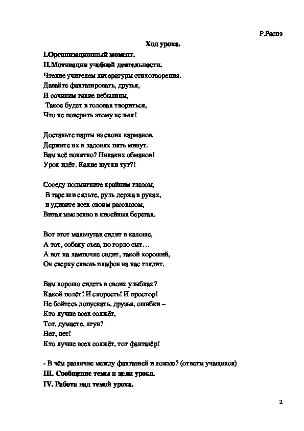 В чём различие между фантазией и ложью? (ответы учащихся)