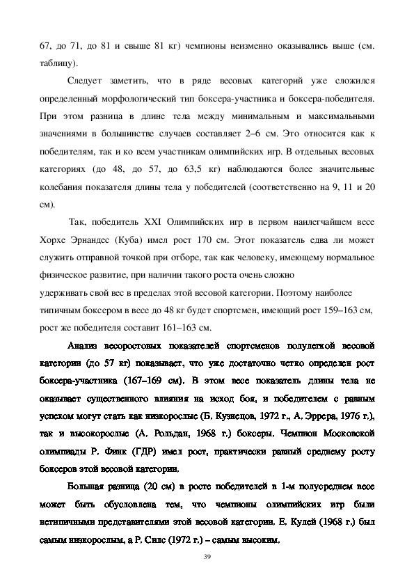 На основании изучения весоростовых характеристик кикбоксеров и их связи с