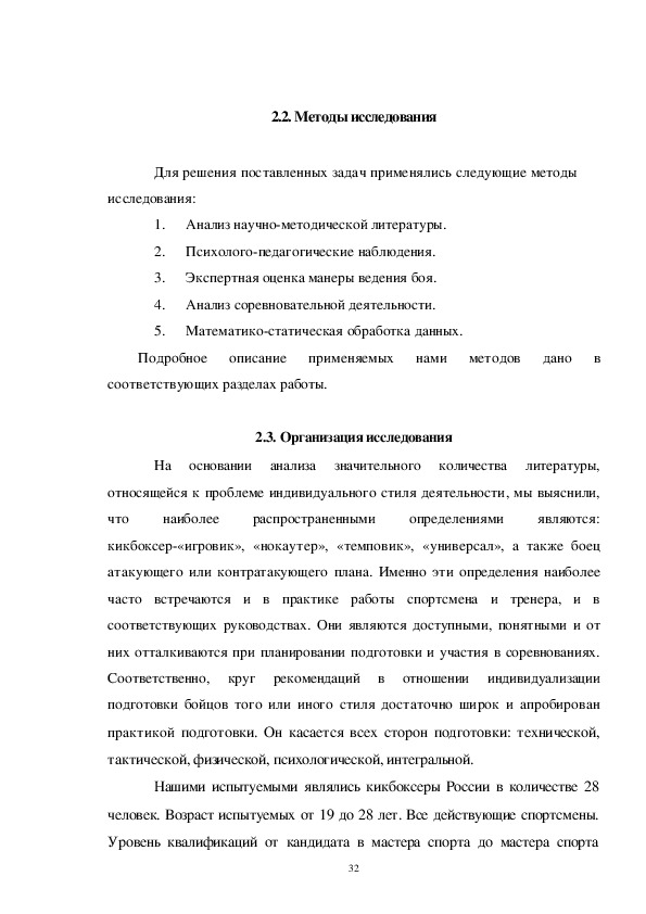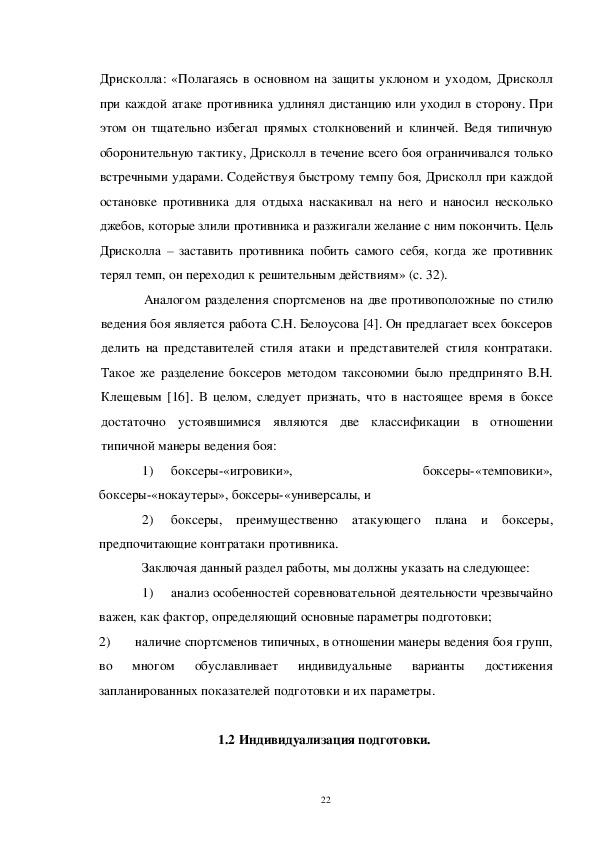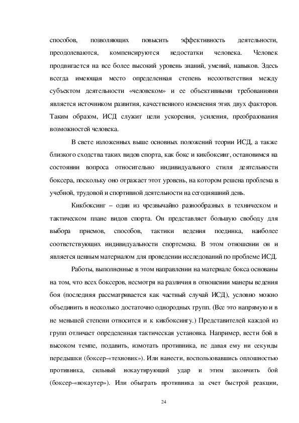 современном кикбоксинге. Кроме того, для реализации индивидуального подхода