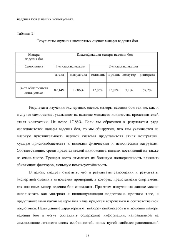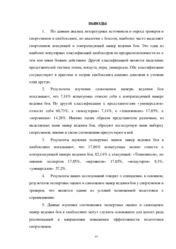 самооценки манеры ведения боя в кикбоксинге как основание к повышению