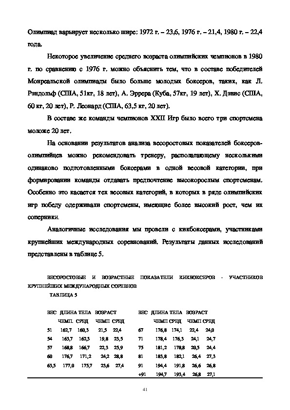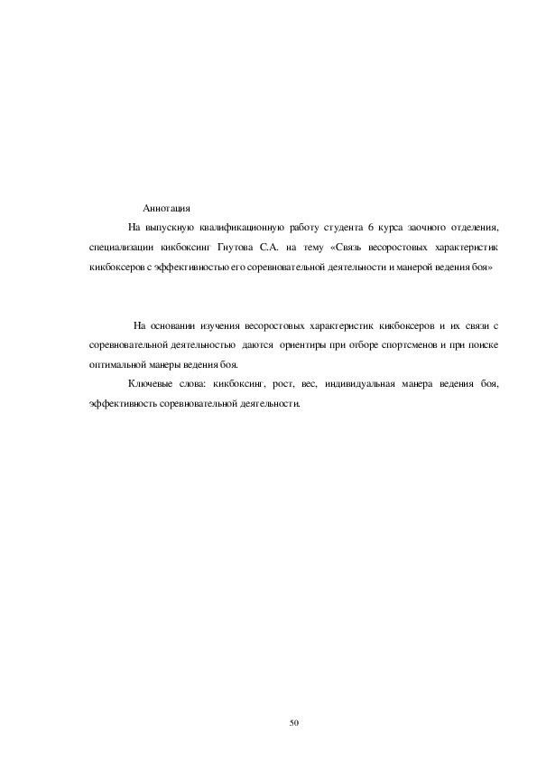 специализации кикбоксинг Гнутова С.А. на тему «Связь весоростовых характеристик