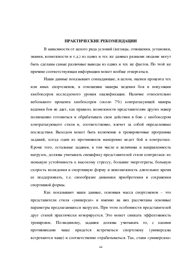 направленности нагрузки у кикбоксеров различных манер ведения боя;