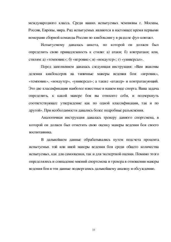 различий в индивидуальной манере ведения боя у кикбоксеров высокой