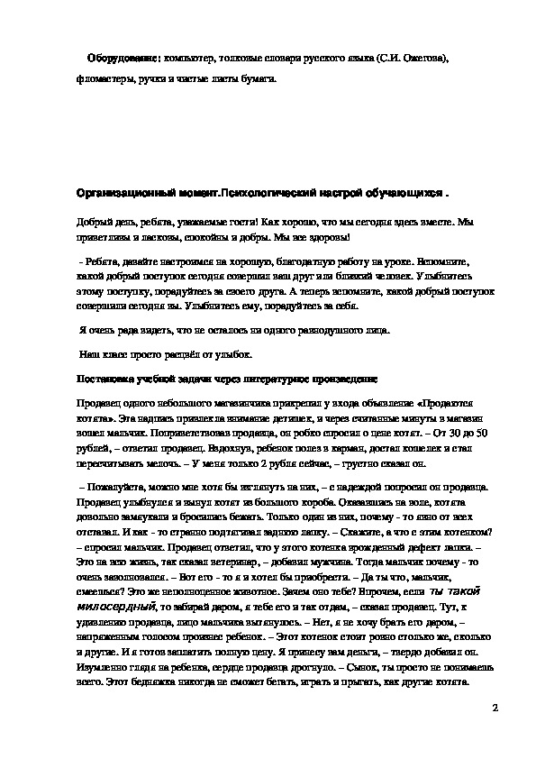 1Оборудование: компьютер, толковые словари русского языка (С.И. Ожегова),