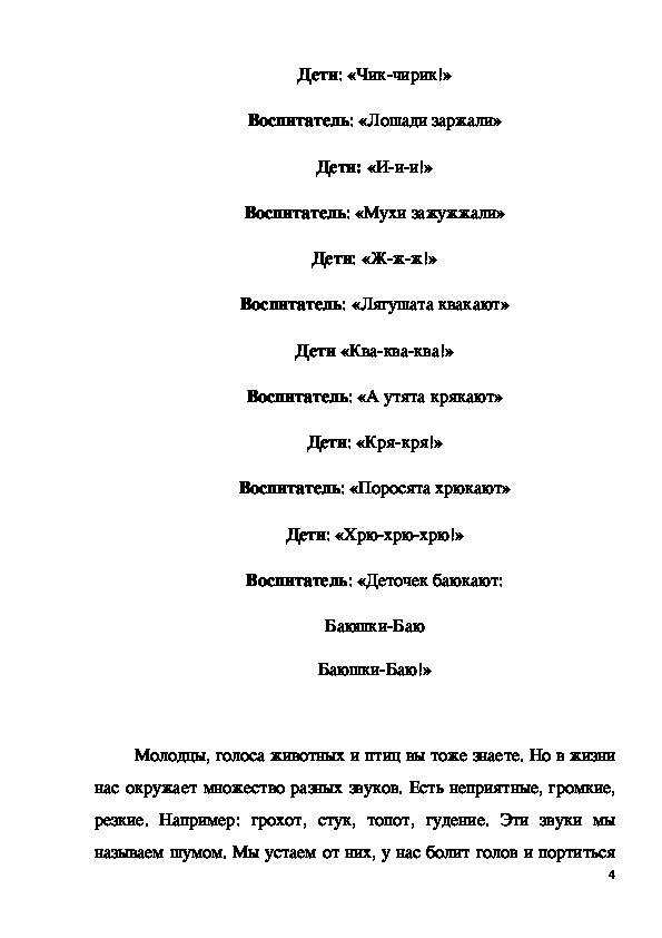 звуки музыки. А сейчас вспомним, как кричат гуси, мурлыкают