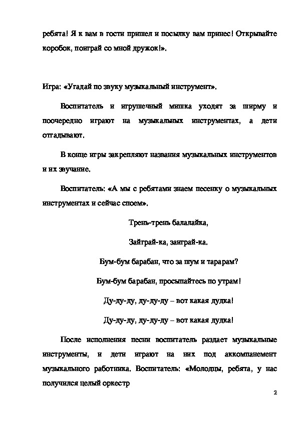 Воспитатель: «А мы с ребятами знаем песенку о музыкальных