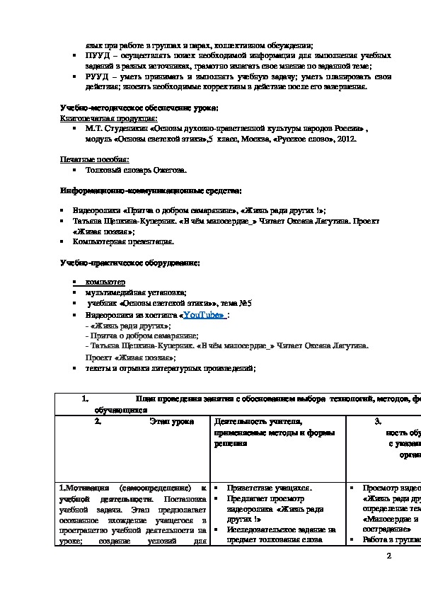 Цель: познакомить учащихся с пониманием понятий «милосердие» и «сострадание», их проявлениями в религиях народов России, показать взаимосвязь понятий «милосердие», «ближний», «любовь к врагам».конспект