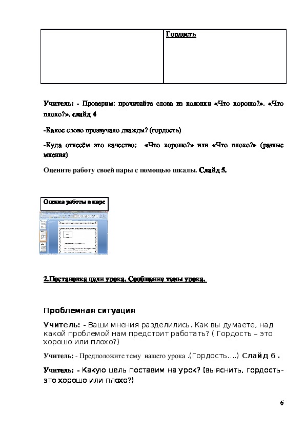 создание условий для понимания значения понятий гордость и гордыня,