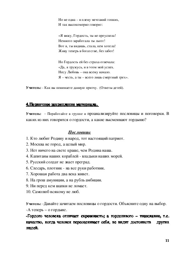 11Учитель: Что же делать, чтобы прослыть гордым, а не горделивым? (ответы