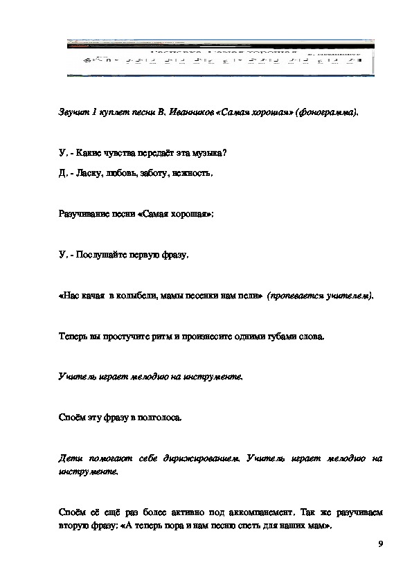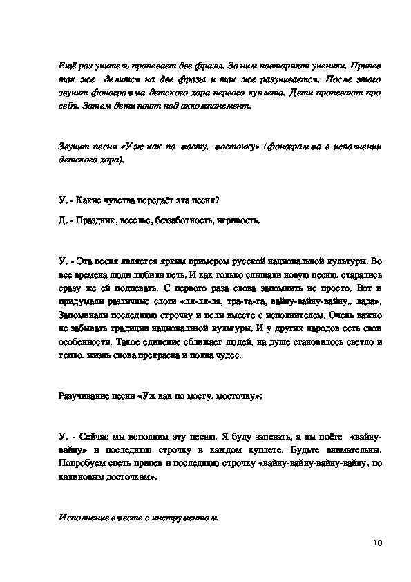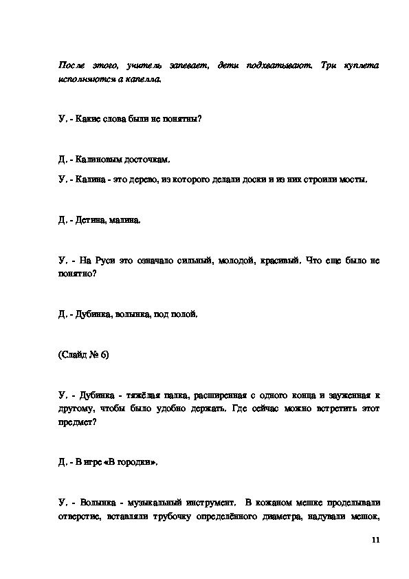 10После этого, учитель запевает, дети подхватывают. Три куплета
