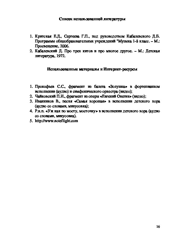 1. Критская Е.Д., Сергеева Г.П., под руководством Кабалевского Д.Б.