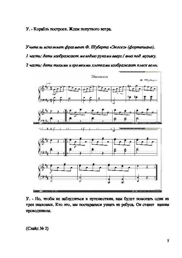 Учитель исполняет фрагмент Ф. Шуберта «Экосез» (фортепиано).