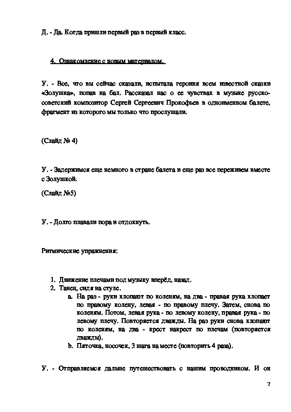 1. Прокофьев С.С., фрагмент из балета «Золушка» в фортепианном