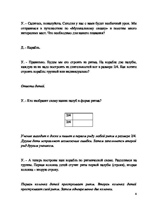 У. Правильно. Будем мы его строить из ритма. На корабле две палубы,
