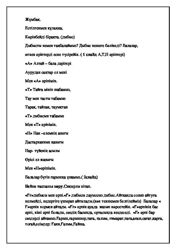жасауды.)«Ғ» дыбысы қандай дыбыс?Дауыссыз дыбыс.Қандай текшемен
