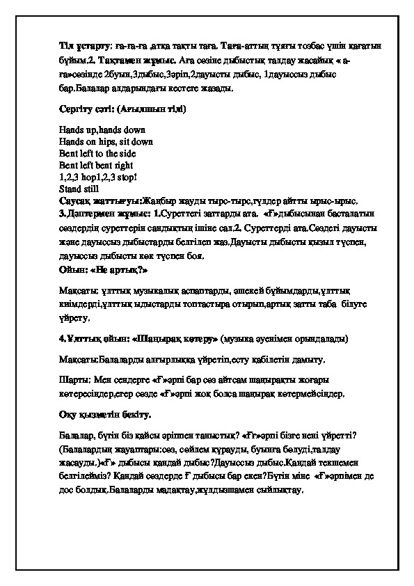 Мақсаты:Балаларды алғырлыққа үйретіп,есту қабілетін дамыту.